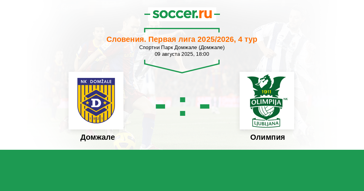 Словения. Первая Лига 22.09.2021 Олимпия Логотип футбольный клуб Олимпия (Любляна) 2:1 Логотип футбольный клуб Домжале Домжале
