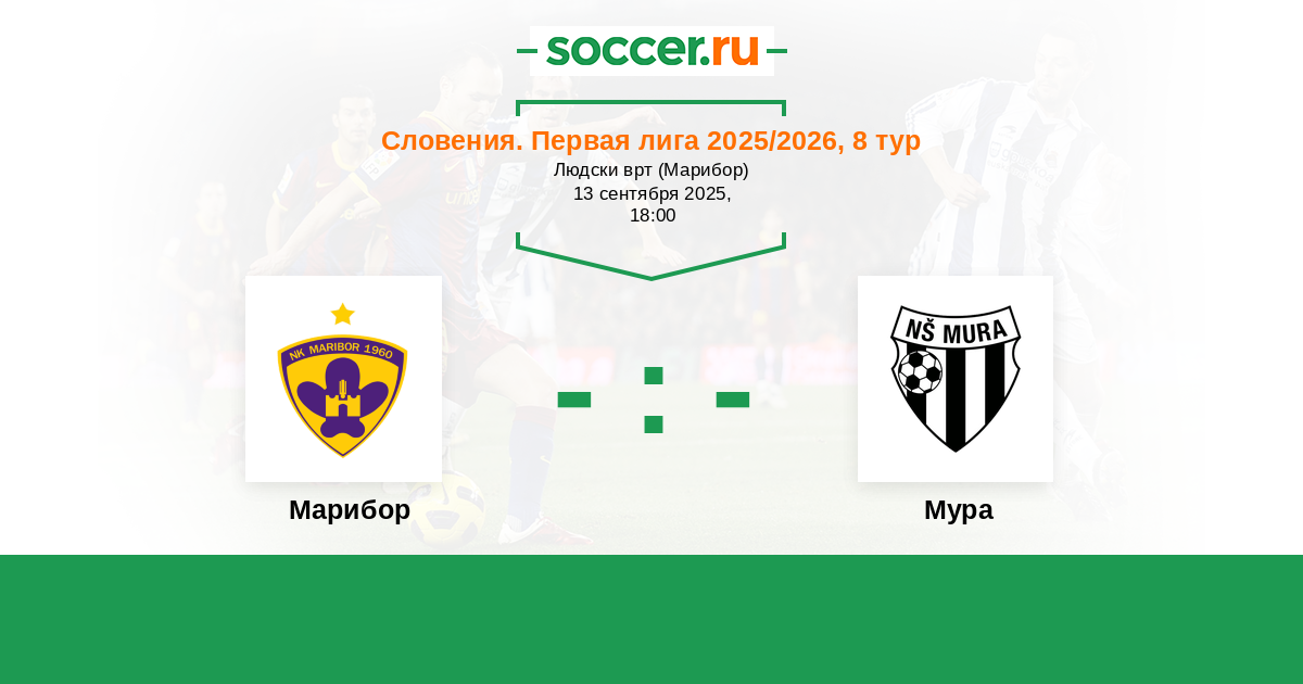 Словения. Первая Лига 19.09.2021 Марибор Логотип футбольный клуб Марибор 1:2 Логотип футбольный клуб Мура (Мурска Собота) Мура