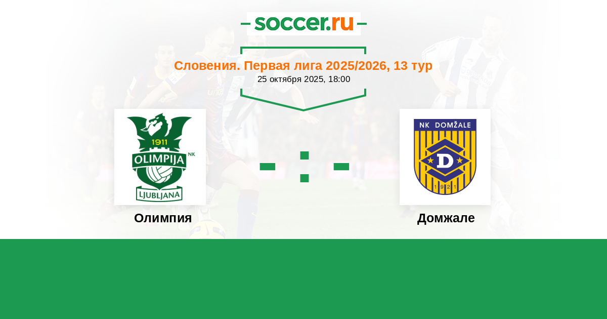 Словения. Первая Лига 04.11.2018 Олимпия Логотип футбольный клуб Олимпия (Любляна) 4:4 Логотип футбольный клуб Домжале Домжале