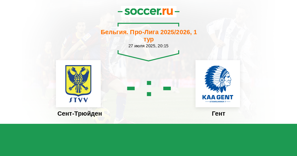 Бельгия. Про-Лига 30.07.2022 Гент Логотип футбольный клуб Гент 1:1 Логотип футбольный клуб Сент-Трюйден (Синт-Трёйден) Сент-Трюйден