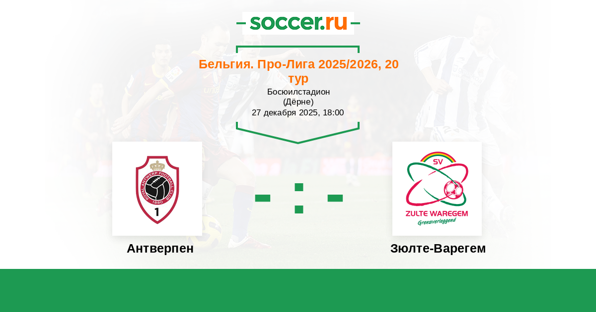 Бельгия. Про-Лига 15.10.2017 Антверпен Логотип футбольный клуб Антверпен 3:0 Логотип футбольный клуб Зюлте-Варегем Зюлте-Варегем