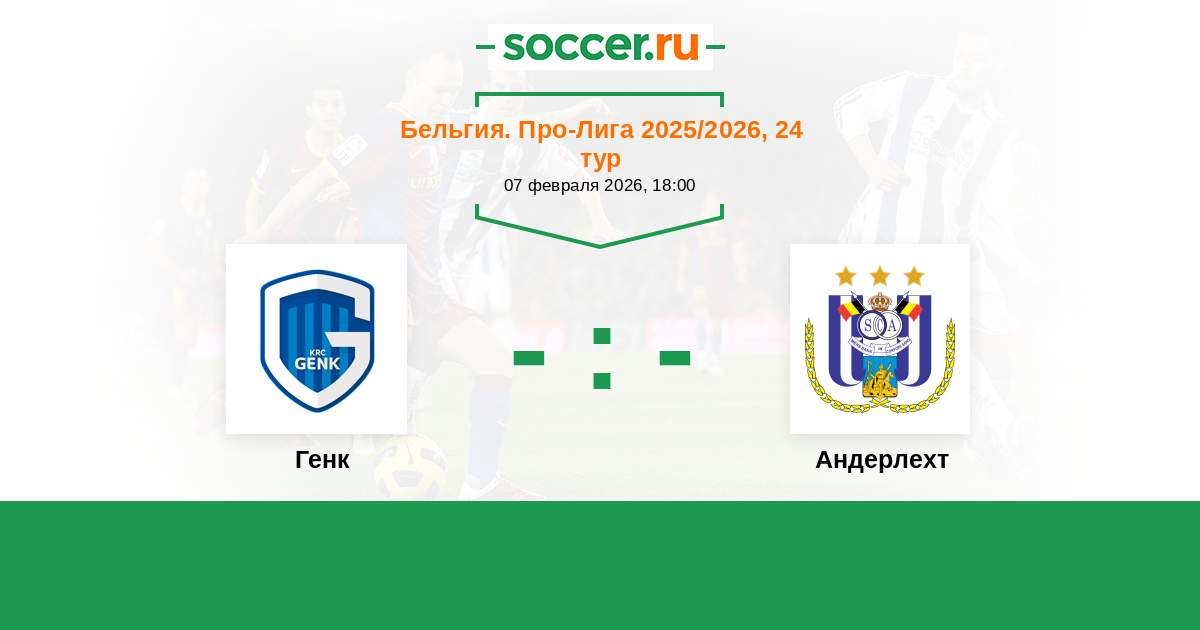 Бельгия. Про-Лига 14.09.2025 Андерлехт Логотип футбольный клуб Андерлехт (Брюссель) 1:1 Логотип футбольный клуб Генк Генк