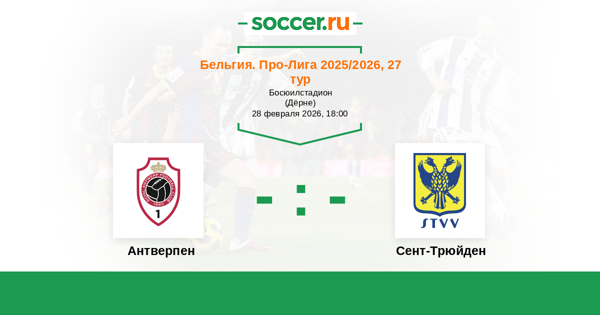 Бельгия. Про-Лига 21.02.2021 Антверпен Логотип футбольный клуб Антверпен 0:0 Логотип футбольный клуб Сент-Трюйден (Синт-Трёйден) Сент-Трюйден