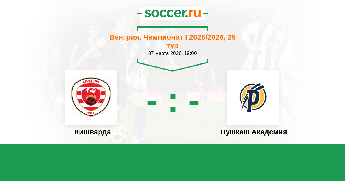 Венгрия. Чемпионат 1 06.04.2019 Пушкаш Академия Логотип футбольный клуб Пушкаш Академия (Фелксут) 0:4 Логотип футбольный клуб Кишварда Кишварда