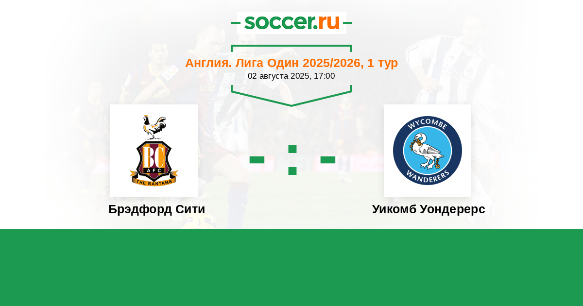Англия. Первая Футбольная Лига 25.08.2018 Брэдфорд Сити Логотип футбольный клуб Брэдфорд Сити 1:2 Логотип футбольный клуб Уикомб Уондерерс (Хай-Вайкомб) Уикомб Уондерерс