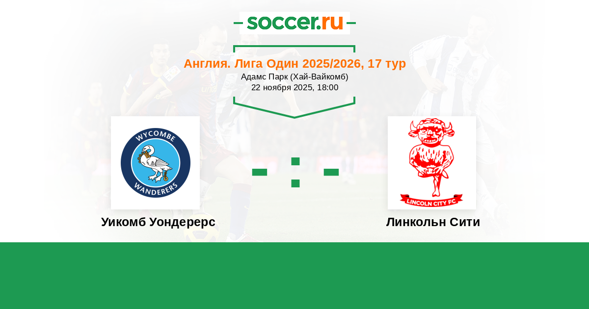 Англия. Первая Футбольная Лига 23.11.2024 Линкольн Сити Логотип футбольный клуб Линкольн Сити 2:3 Логотип футбольный клуб Уикомб Уондерерс (Хай-Вайкомб) Уикомб Уондерерс