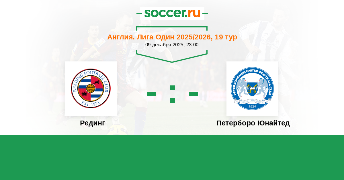 Англия. Первая Футбольная Лига 29.12.2025 Петерборо Юнайтед Логотип футбольный клуб Петерборо Юнайтед 1:1 Логотип футбольный клуб Рединг Рединг