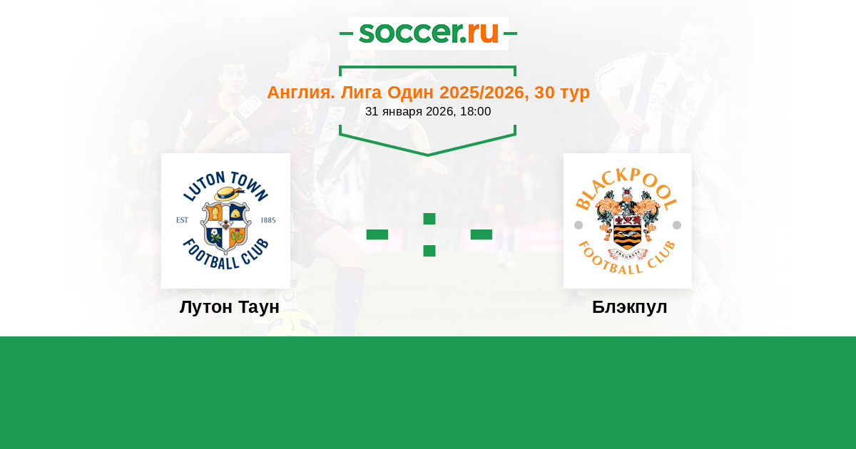 Англия. Первая Футбольная Лига 22.09.2018 Блэкпул Логотип футбольный клуб Блэкпул 0:0 Логотип футбольный клуб Лутон Таун Лутон Таун