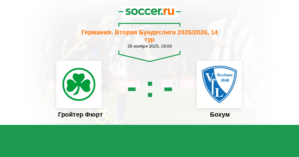 Германия. Бундеслига 2 02.11.2018 Гройтер Фюрт Логотип футбольный клуб Гройтер Фюрт 2:2 Логотип футбольный клуб Бохум Бохум