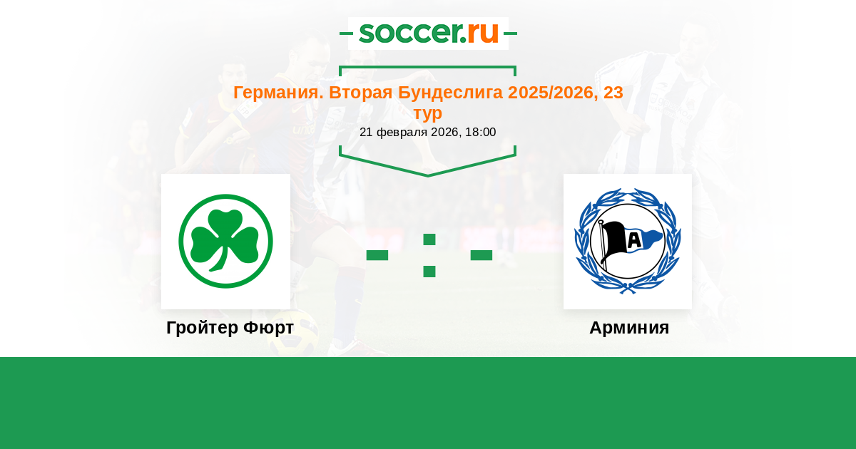 Германия. Бундеслига 2 24.01.2018 Арминия Логотип футбольный клуб Арминия (Билефельд) 0:0 Логотип футбольный клуб Гройтер Фюрт Гройтер Фюрт