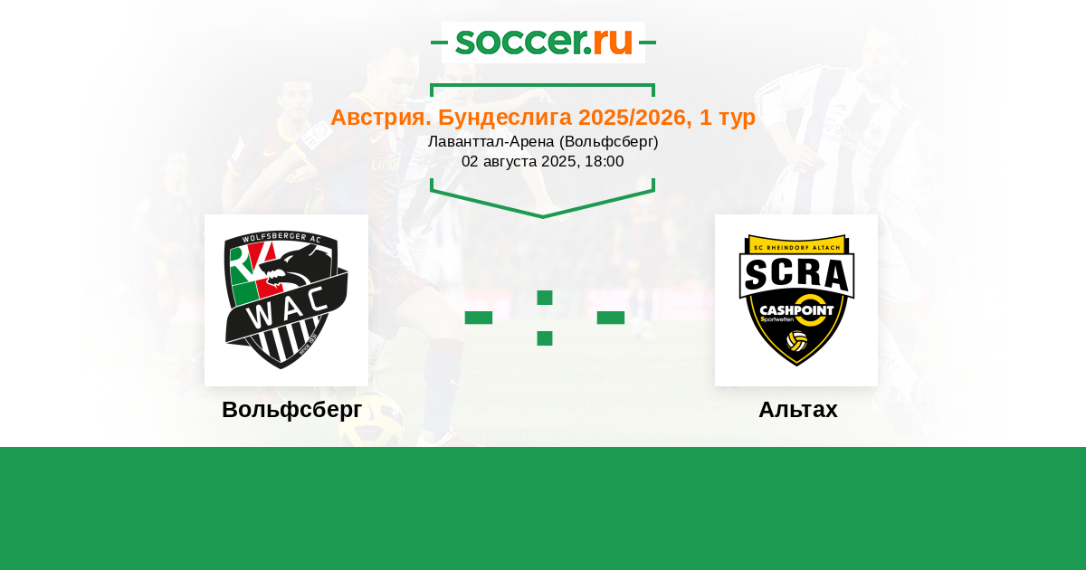 Австрия. Бундеслига 18.08.2024 Альтах Логотип футбольный клуб Альтах 2:0 Логотип футбольный клуб Вольфсберг Вольфсберг