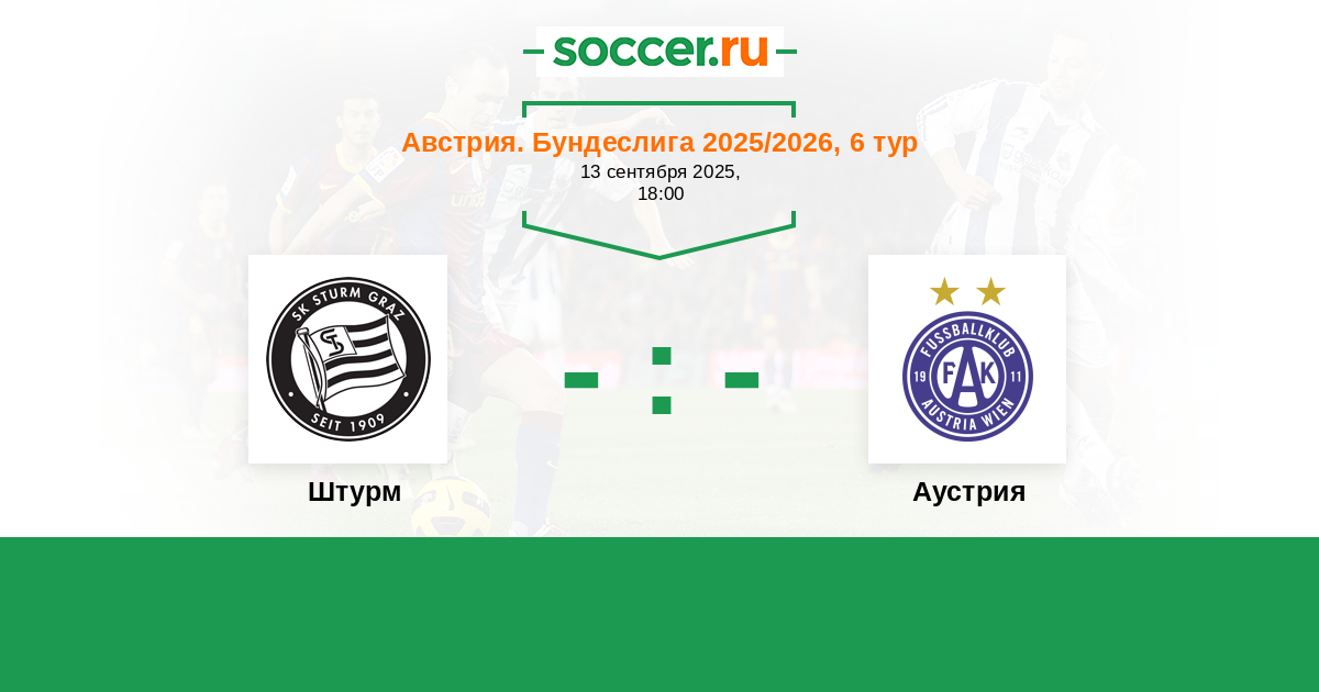 Австрия. Бундеслига 21.09.2013 Штурм Логотип футбольный клуб Штурм (Грац) 1:2 Логотип футбольный клуб Аустрия (Вена) Аустрия