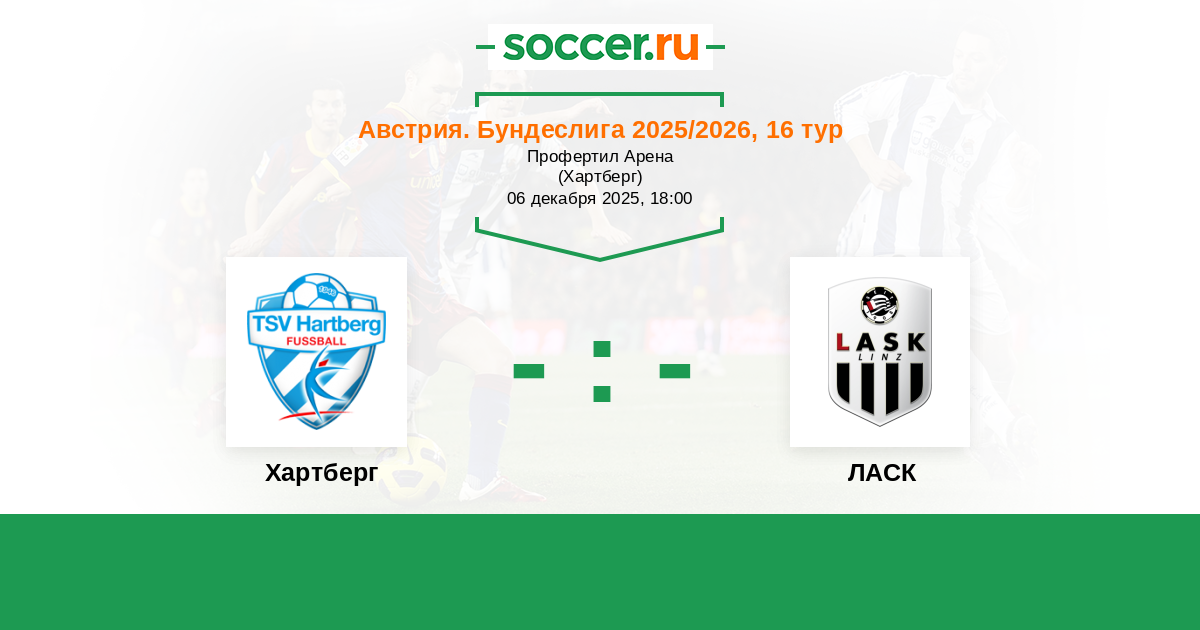 Австрия. Бундеслига 18.02.2024 Хартберг Логотип футбольный клуб Хартберг 0:0 Логотип футбольный клуб ЛАСК (Линц) ЛАСК