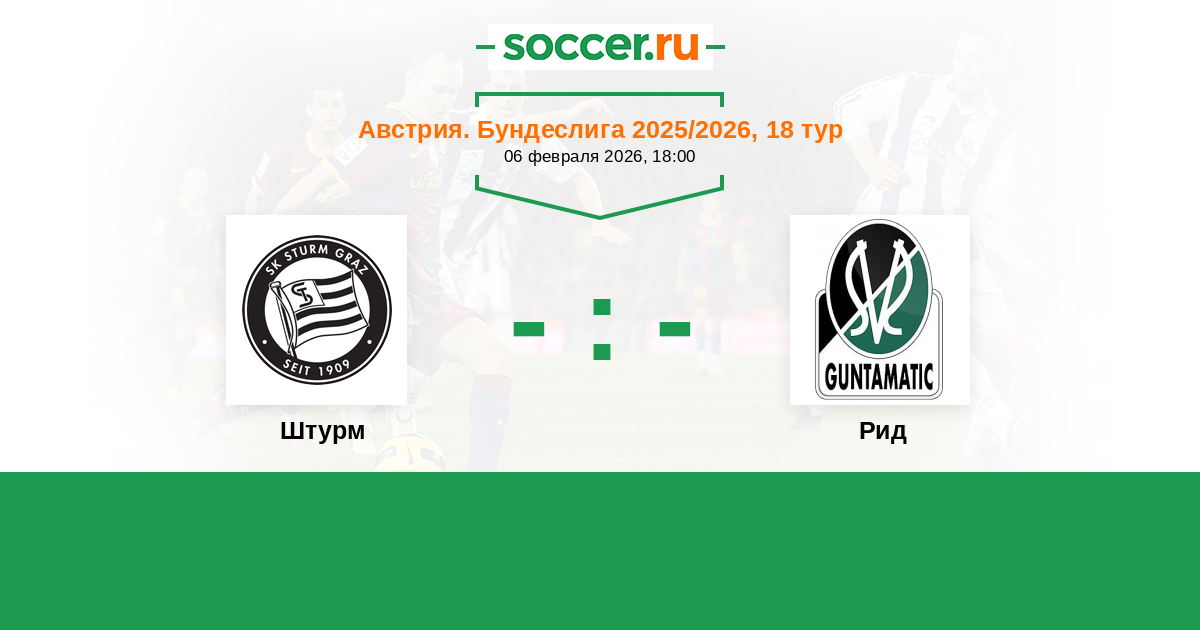 Австрия. Бундеслига 24.02.2007 Штурм Логотип футбольный клуб Штурм (Грац) 1:1 Логотип футбольный клуб Рид Рид