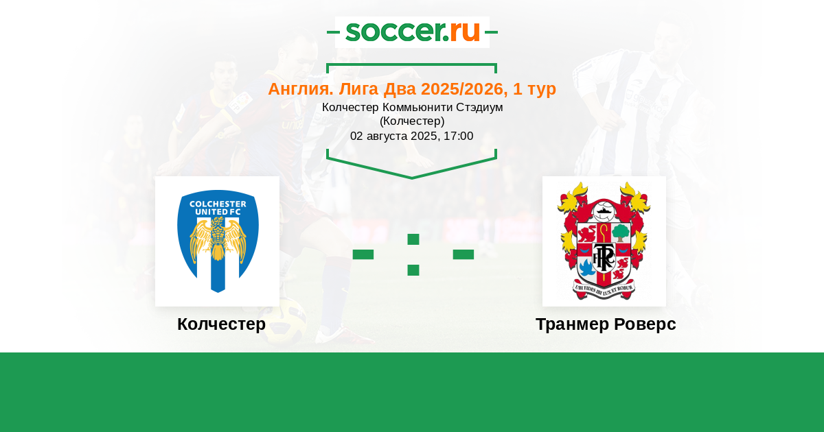 Англия. Вторая Футбольная Лига 09.09.2023 Колчестер Логотип футбольный клуб Колчестер 2:0 Логотип футбольный клуб Транмер Роверс Транмер Роверс