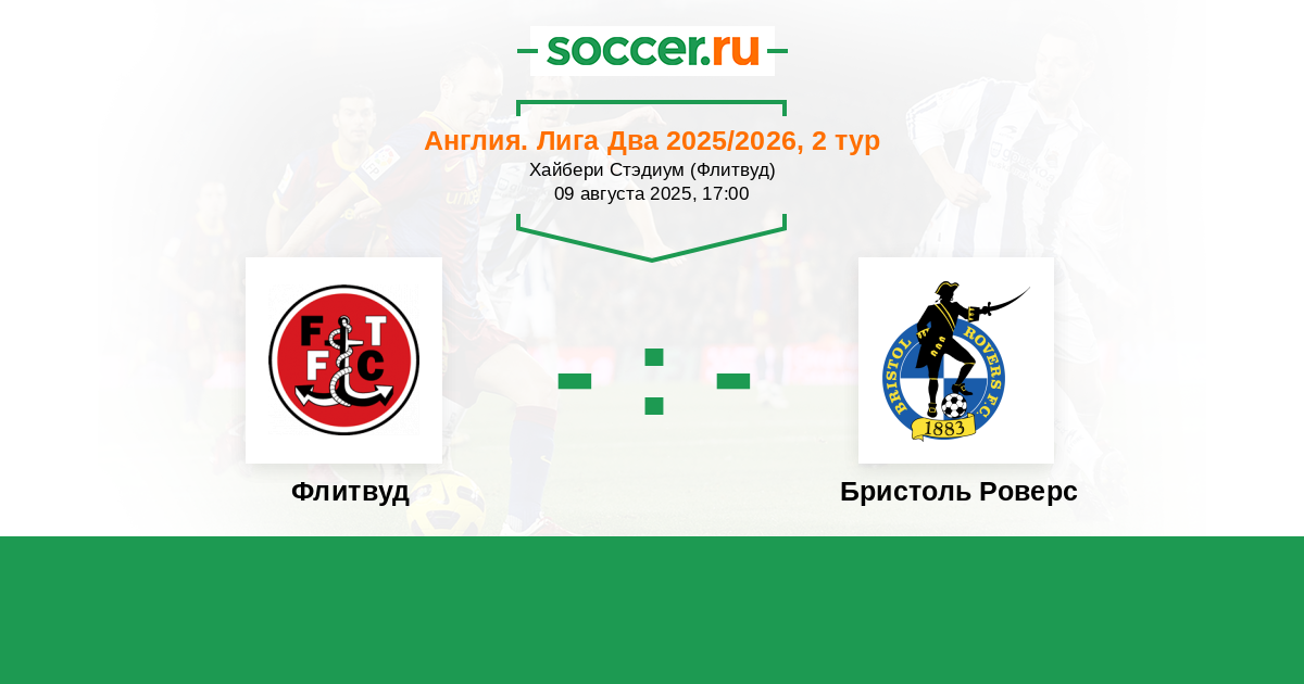 Англия. Первая Футбольная Лига 26.08.2017 Бристоль Роверс Логотип футбольный клуб Бристоль Роверс 3:1 Логотип футбольный клуб Флитвуд Флитвуд