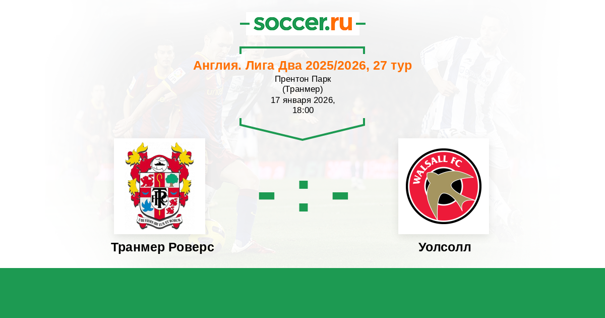 Англия. Вторая Футбольная Лига 11.01.2025 Уолсолл Логотип футбольный клуб Уолсолл 5:1 Логотип футбольный клуб Транмер Роверс Транмер Роверс