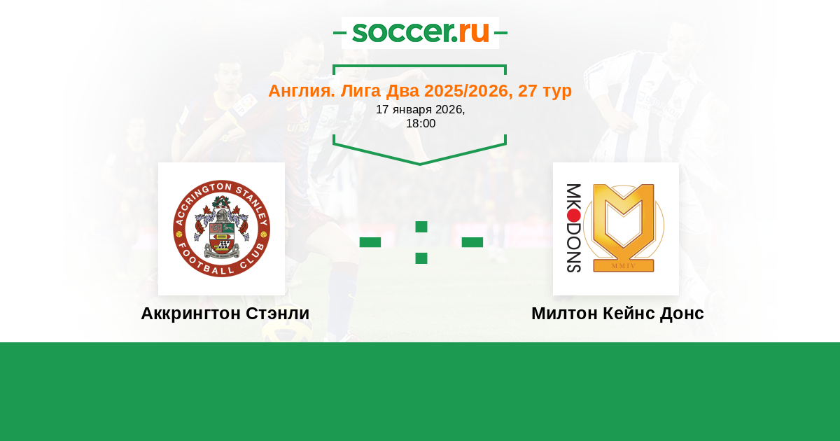 Англия. Первая Футбольная Лига 08.01.2022 Аккрингтон Стэнли Логотип футбольный клуб Аккрингтон Стэнли 1:1 Логотип футбольный клуб Милтон Кейнс Донс Милтон Кейнс Донс