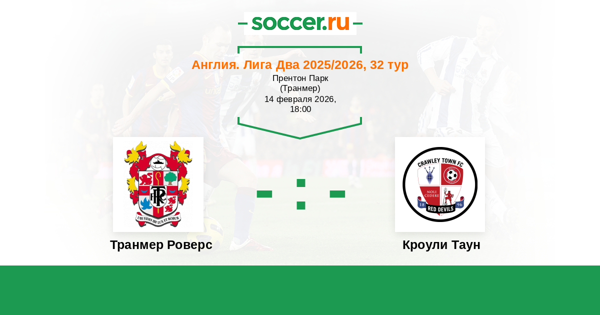 Англия. Вторая Футбольная Лига 23.08.2025 Кроули Таун Логотип футбольный клуб Кроули Таун 0:2 Логотип футбольный клуб Транмер Роверс Транмер Роверс