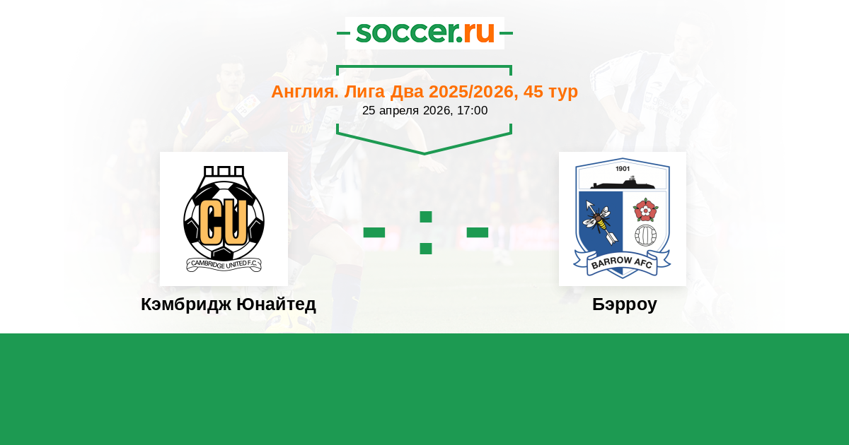 Англия. Вторая Футбольная Лига 22.11.2025 Бэрроу Логотип футбольный клуб Бэрроу (Бэрроу-и-Фарнесс) 0:2 Логотип футбольный клуб Кэмбридж Юнайтед Кэмбридж Юнайтед