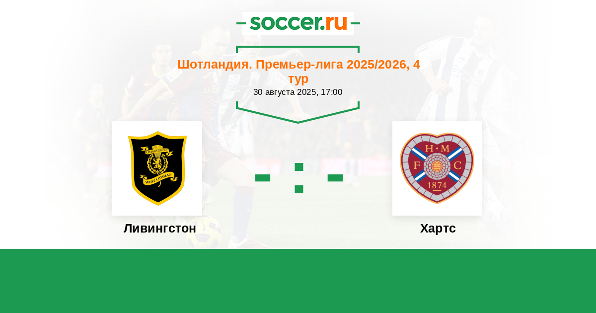 Шотландия. Премьер-Лига 26.10.2019 Ливингстон Логотип футбольный клуб Ливингстон 0:0 Логотип футбольный клуб Хартс (Эдинбург) Хартс