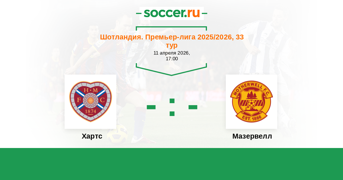 Шотландия. Премьер-Лига 12.04.2025 Мазервелл Логотип футбольный клуб Мазервелл 0:0 Логотип футбольный клуб Хартс (Эдинбург) Хартс