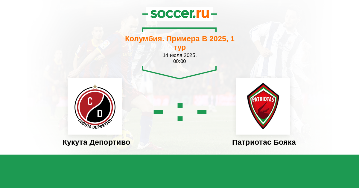Колумбия. Примера B 14.06.2025 Патриотас Бояка Логотип футбольный клуб Патриотас Бояка (Тунха) 3:2 Логотип футбольный клуб Кукута Депортиво Кукута Депортиво