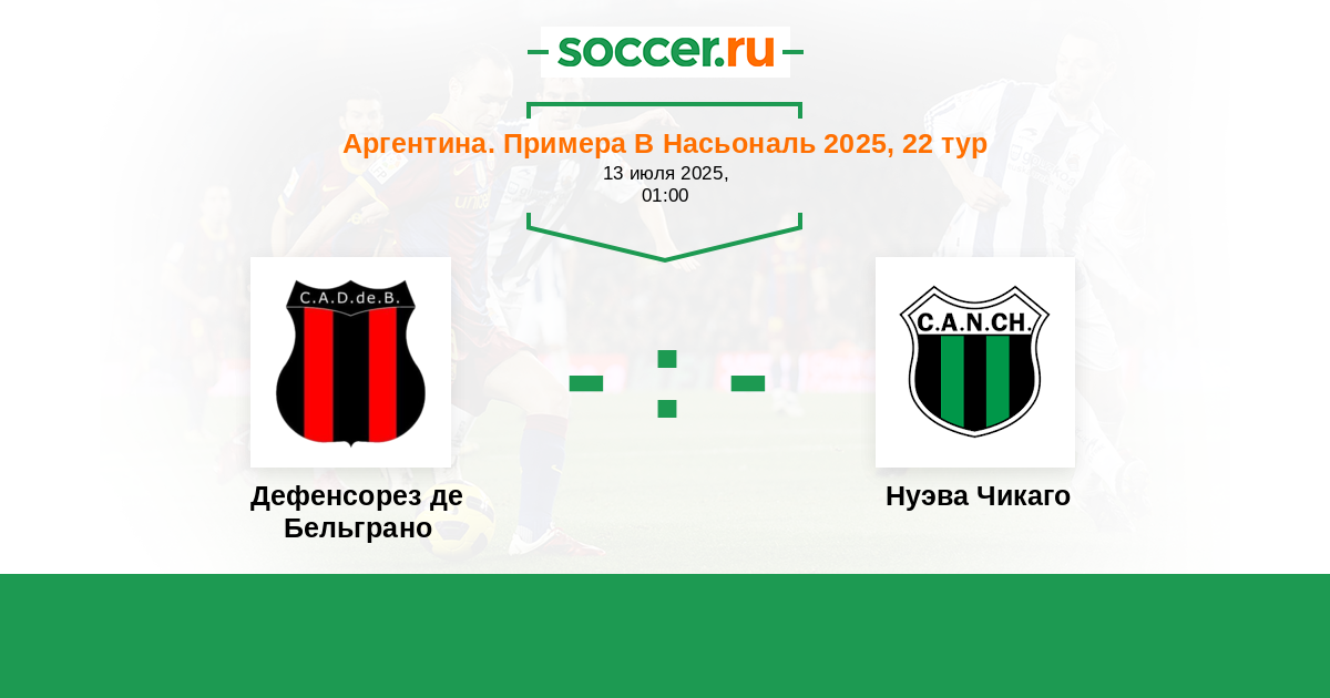Аргентина. Примера Б Насьональ 28.03.2022 Дефенсорез де Бельграно Логотип футбольный клуб Дефенсорез де Бельграно (Буэнос-Айрес) 1:1 Логотип футбольный клуб Нуэва Чикаго ( Матадерос) Нуэва Чикаго