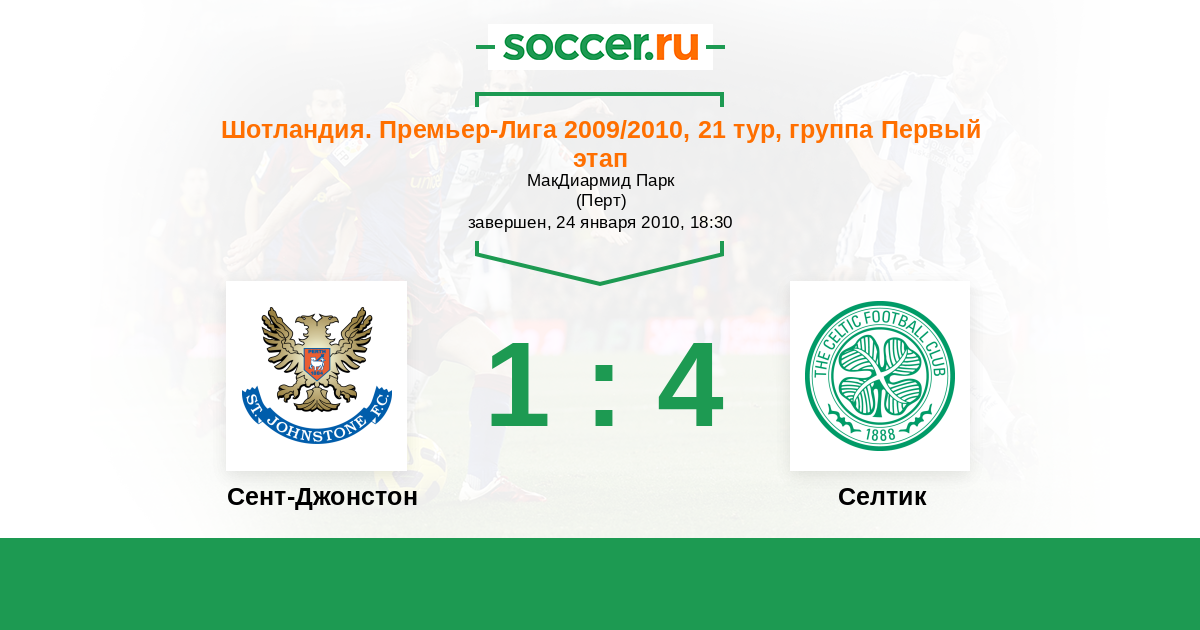 Шотландия. Премьер-Лига 20.03.2010 Селтик Логотип футбольный клуб Селтик (Глазго) 3:0 Логотип футбольный клуб Сент-Джонстон (Перт) Сент-Джонстон