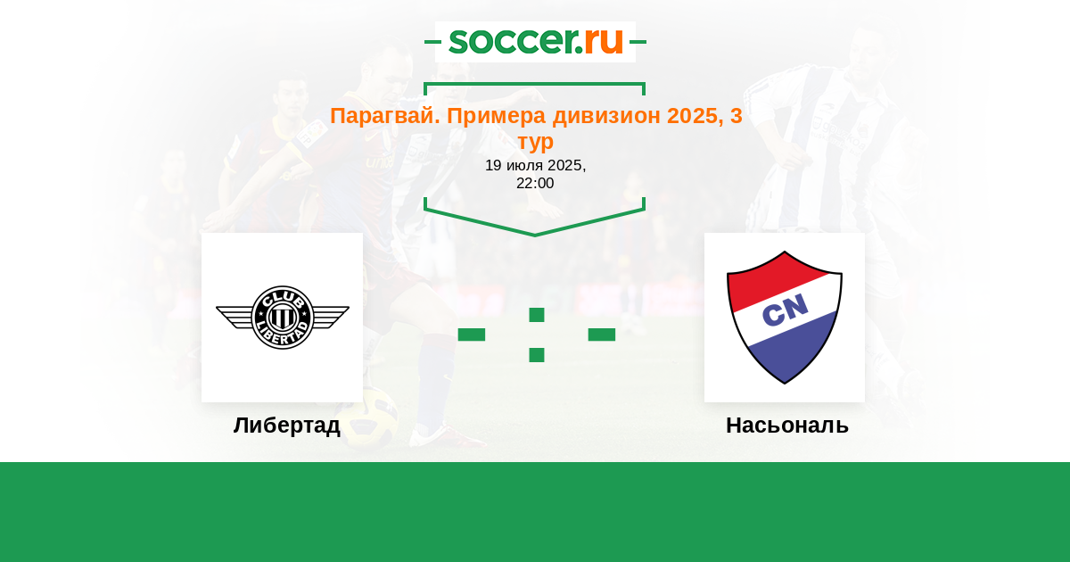 Парагвай. Примера дивизион 15.03.2022 Насьональ Логотип футбольный клуб Насьональ (Асунсьон) 0:3 Логотип футбольный клуб Либертад (Асунсьон) Либертад