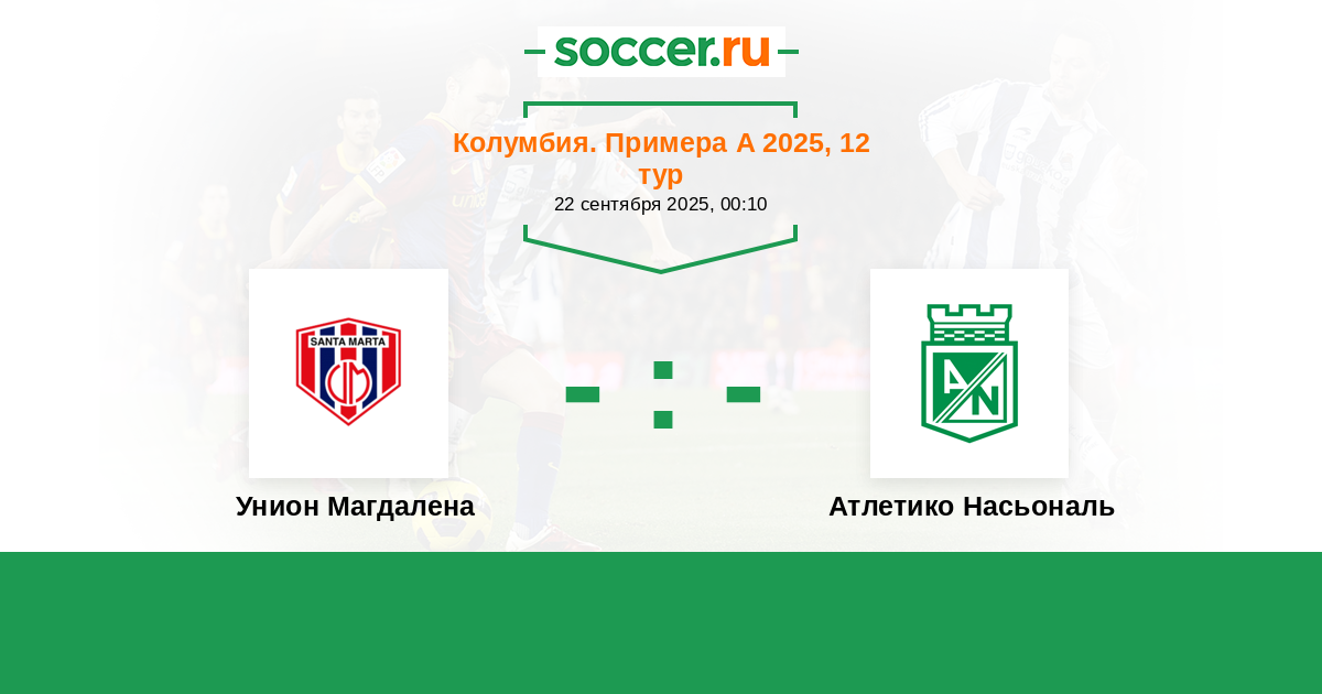 Колумбия. Примера А 05.04.2025 Атлетико Насьональ Логотип футбольный клуб Атлетико Насьональ (Медельин) 1:0 Логотип футбольный клуб Унион Магдалена (Санта Марта) Унион Магдалена