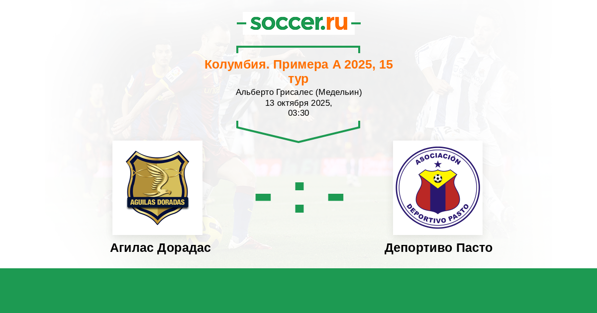 Колумбия. Примера А 07.04.2024 Агилас Дорадас Логотип футбольный клуб Агилас Дорадас (Рионегро) 0:1 Логотип футбольный клуб Депортиво Пасто Депортиво Пасто