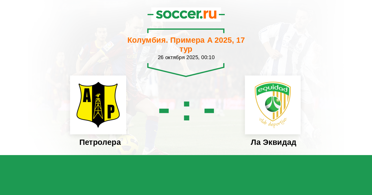Колумбия. Примера А 15.04.2024 Петролера Логотип футбольный клуб Петролера 0:3 Логотип футбольный клуб Ла Эквидад (Богота) Ла Эквидад