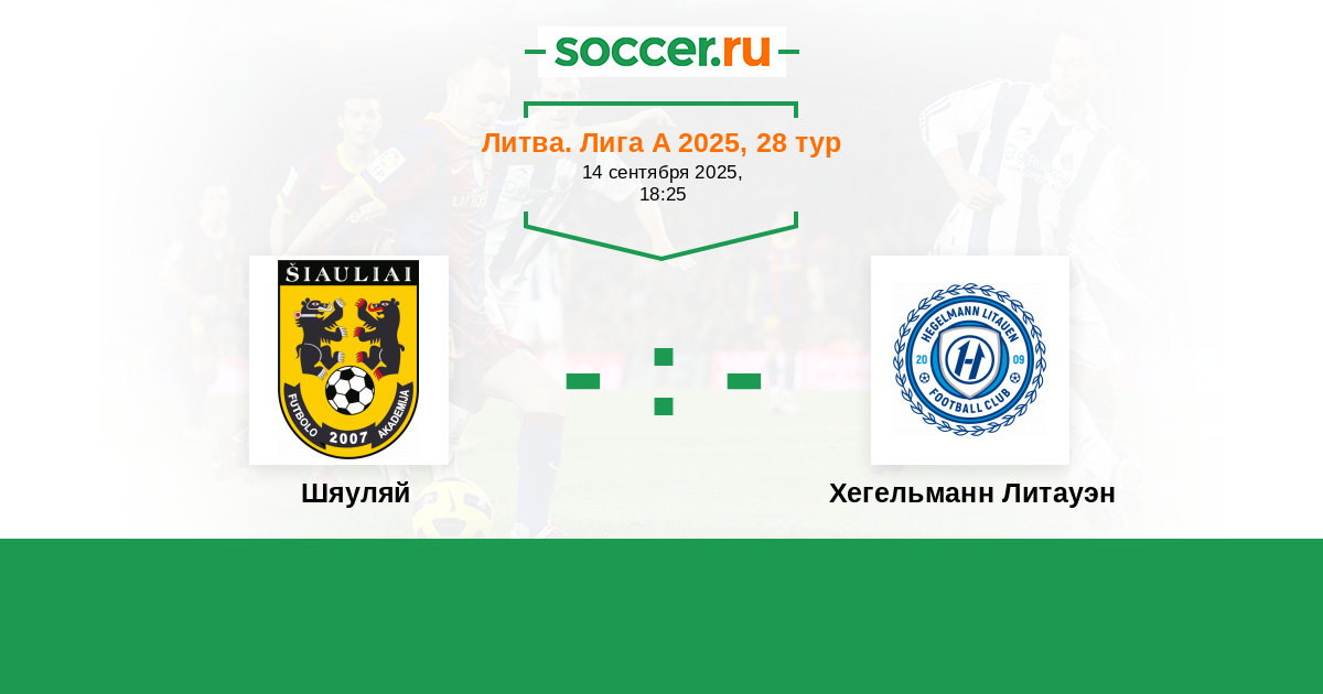 Литва. Лига А 02.05.2025 Шяуляй Логотип футбольный клуб Шяуляй 0:3 Логотип футбольный клуб Хегельманн Литауэн (Каунас) Хегельманн Литауэн