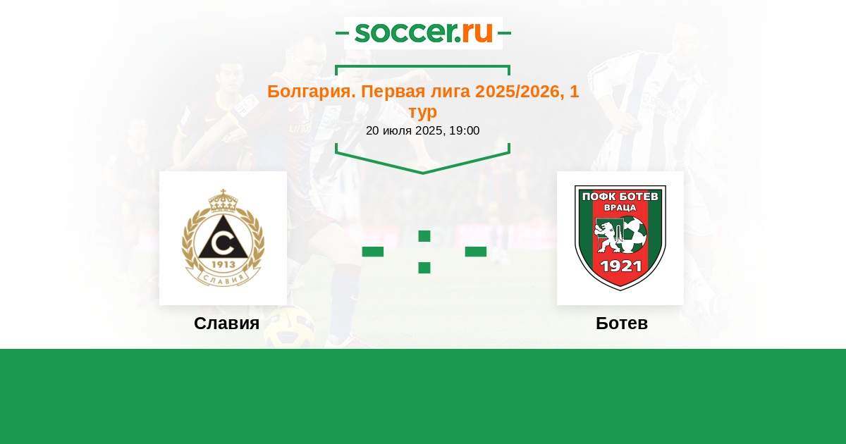 Болгария. Первая лига 24.07.2023 Ботев Логотип футбольный клуб Ботев (Враца) 2:0 Логотип футбольный клуб Славия (София) Славия