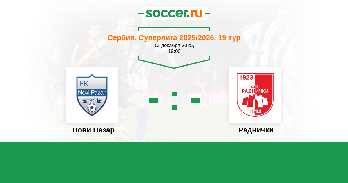 Сербия. Суперлига 10.08.2025 Раднички Логотип футбольный клуб Раднички (Ниш) 2:3 Логотип футбольный клуб Нови Пазар Нови Пазар