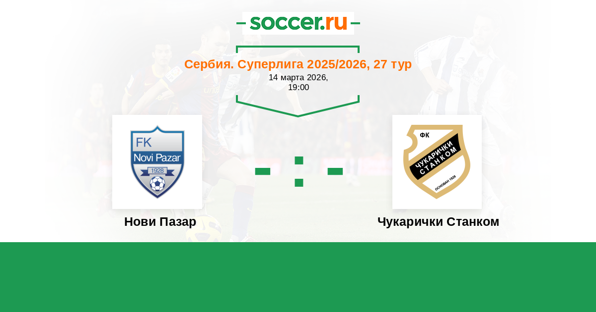 Сербия. Суперлига 19.10.2025 Чукарички Станком Логотип футбольный клуб Чукарички Станком (Белград) 1:1 Логотип футбольный клуб Нови Пазар Нови Пазар