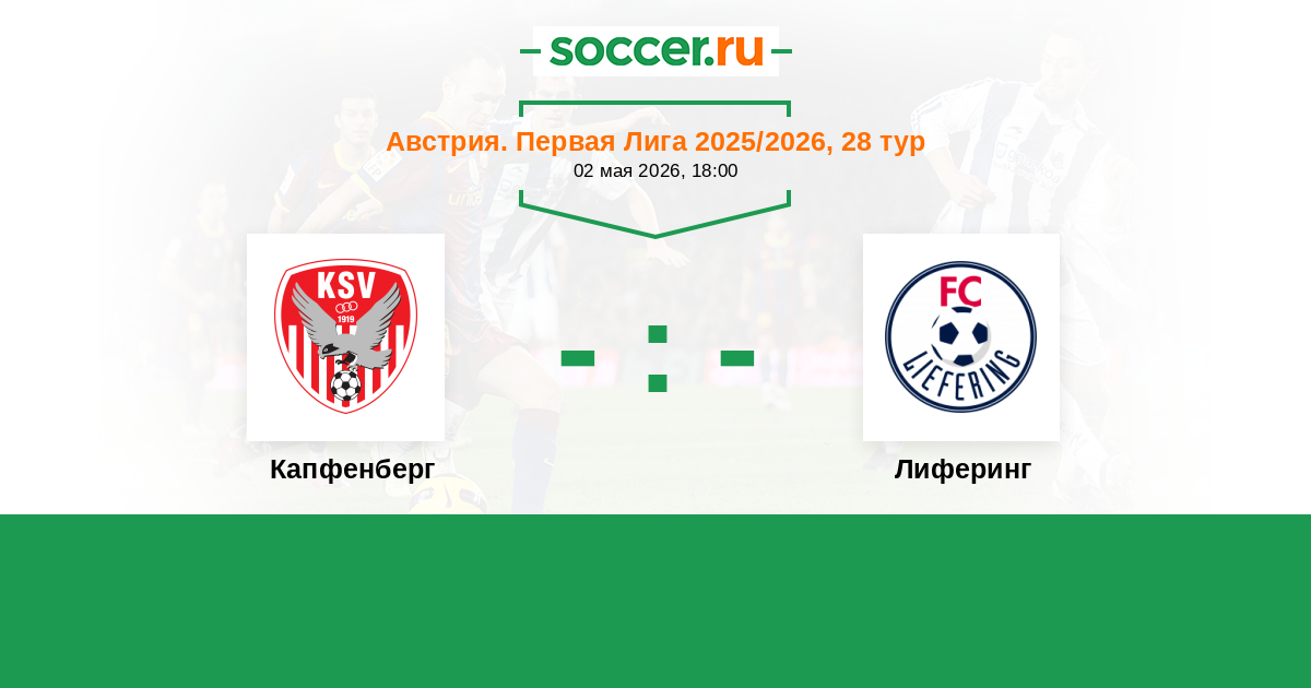 Австрия. Первая Лига 28.03.2014 Капфенберг Логотип футбольный клуб Капфенберг 1:3 Логотип футбольный клуб Лиферинг (Зальцбург) Лиферинг
