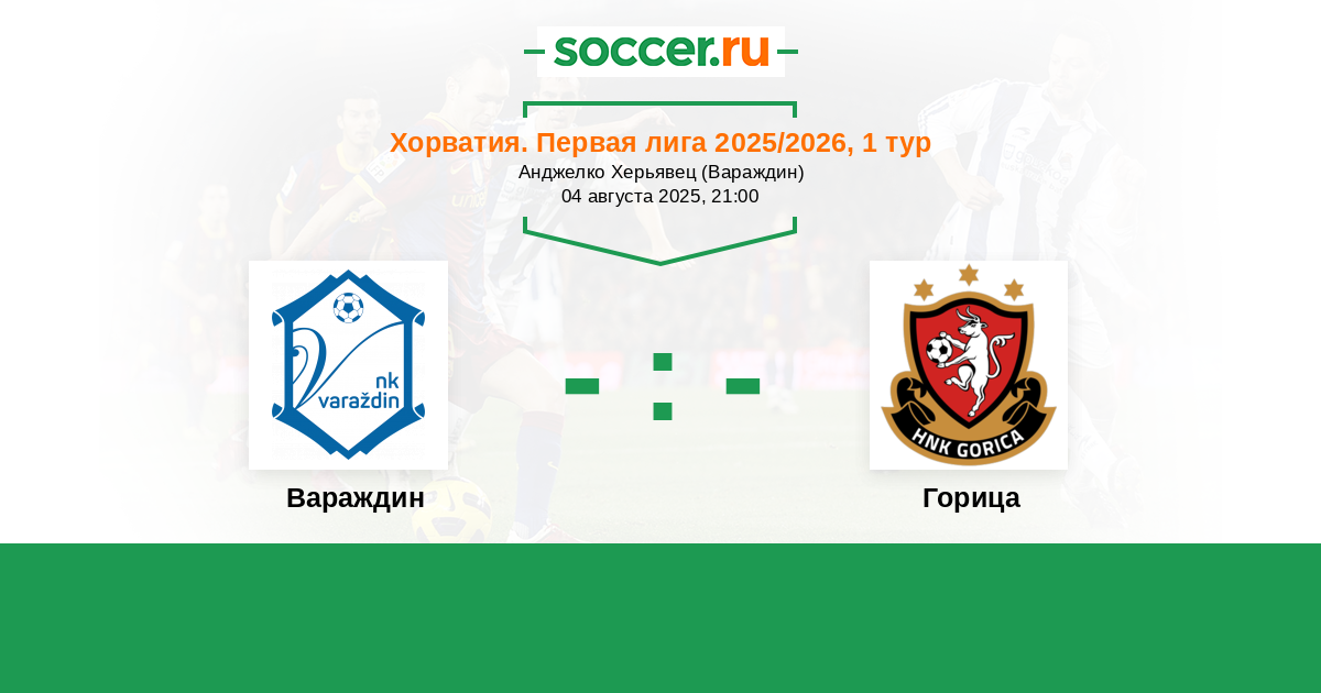 Хорватия. Первая лига 14.08.2020 Вараждин Логотип футбольный клуб Вараждин 1:5 Логотип футбольный клуб Горица (Велика Горица) Горица