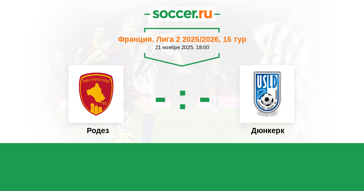 Франция. Лига 2 28.08.2021 Родез Логотип футбольный клуб Родез 2:2 Логотип футбольный клуб Дюнкерк Дюнкерк