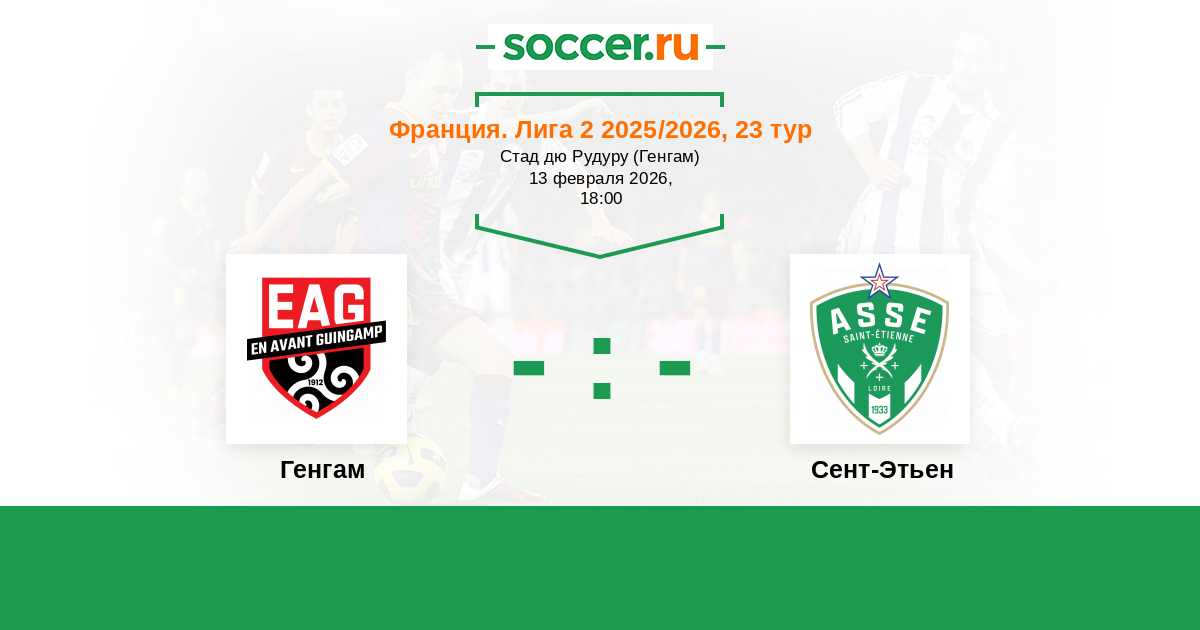 Франция. Лига 2 27.09.2025 Сент-Этьен Логотип футбольный клуб Сент-Этьен 2:3 Логотип футбольный клуб Генгам Генгам