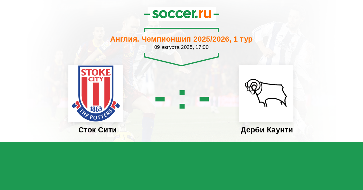 Англия. Чемпионшип 07.08.2006 Сток Сити Логотип футбольный клуб Сток Сити (Сток-он-Трент) 2:0 Логотип футбольный клуб Дерби Каунти Дерби Каунти