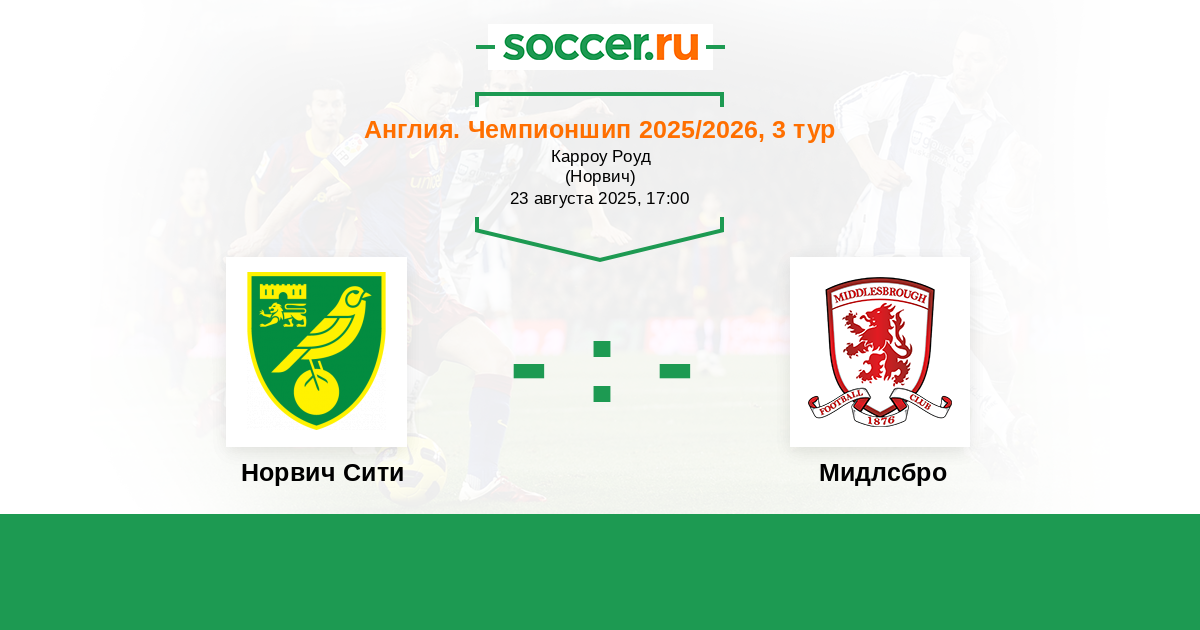 Англия. Чемпионшип 26.09.2017 Мидлсбро Логотип футбольный клуб Мидлсбро 0:1 Логотип футбольный клуб Норвич Сити Норвич Сити
