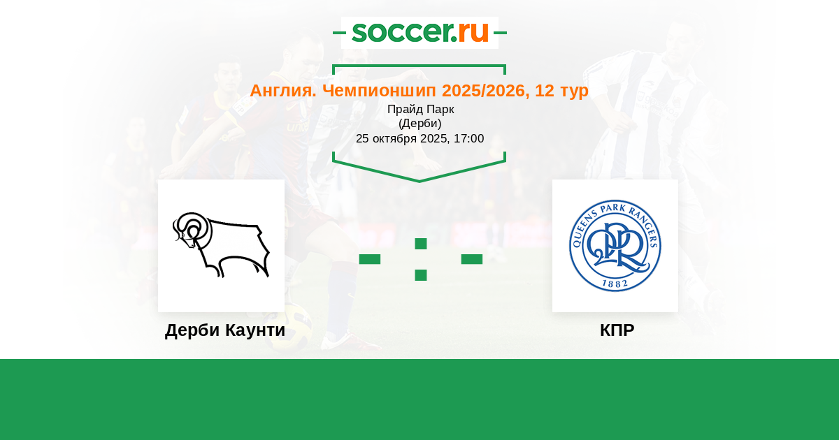 Англия. Чемпионшип 14.02.2025 КПР Логотип футбольный клуб КПР (Лондон) 4:0 Логотип футбольный клуб Дерби Каунти Дерби Каунти
