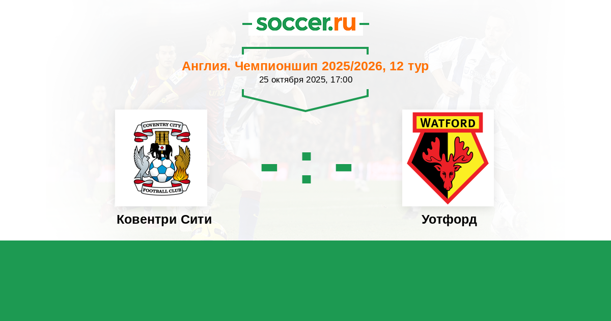 Англия. Чемпионшип 14.09.2024 Уотфорд Логотип футбольный клуб Уотфорд 1:1 Логотип футбольный клуб Ковентри Сити Ковентри Сити