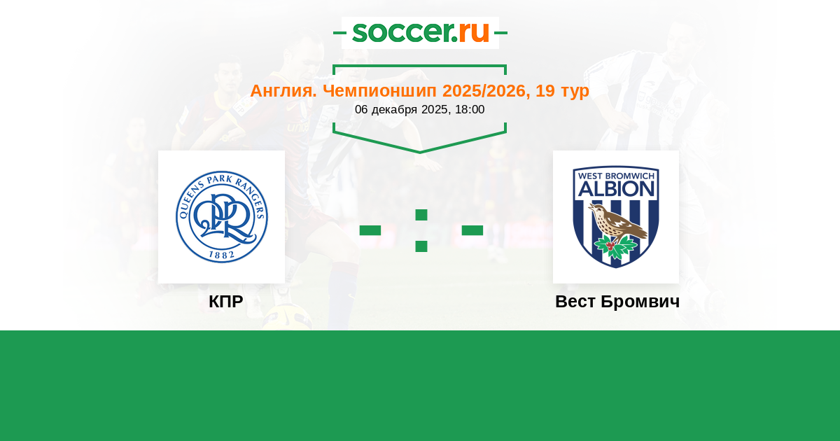 Англия. Чемпионшип 28.09.2019 КПР Логотип футбольный клуб КПР (Лондон) 0:2 Логотип футбольный клуб Вест Бромвич Вест Бромвич