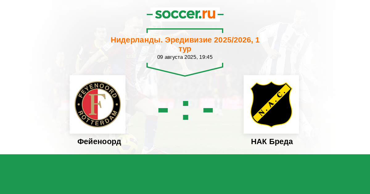 Нидерланды. Эредивизи 22.09.2024 Фейеноорд Логотип футбольный клуб Фейеноорд (Роттердам) 2:0 Логотип футбольный клуб НАК Бреда НАК Бреда