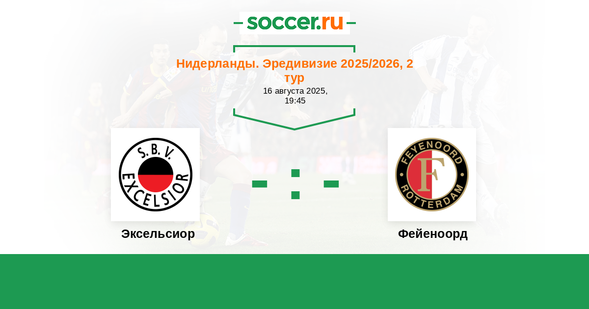 Нидерланды. Эредивизи 25.11.2023 Эксельсиор Логотип футбольный клуб Эксельсиор (Роттердам) 2:4 Логотип футбольный клуб Фейеноорд (Роттердам) Фейеноорд