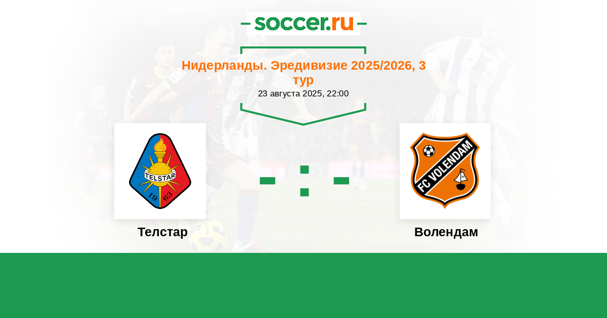 Нидерланды. Первый дивизион 11.03.2025 Волендам Логотип футбольный клуб Волендам 3:0 Логотип футбольный клуб Телстар (Велсен-Зёйд) Телстар
