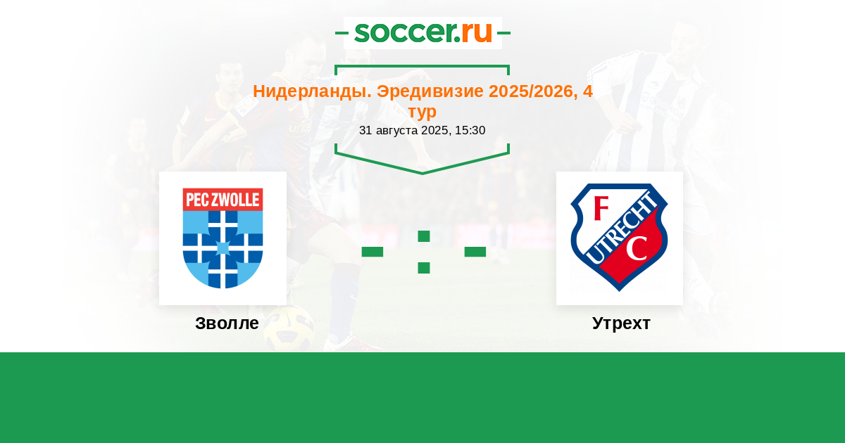 Нидерланды. Эредивизи 25.09.2021 Утрехт Логотип футбольный клуб Утрехт 5:1 Логотип футбольный клуб Зволле Зволле